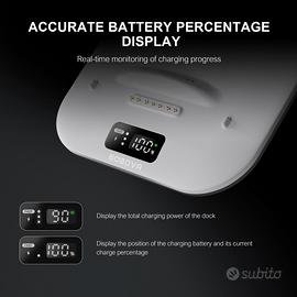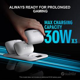 Vendo nuovo imballato dock di ricarica BOBOVR BD3 batterie B100 per Meta Quest 3/3S Caratteristiche principali del prodotto: Ricarica simultaneamente 3 batterie B100 da 30 W ciascuna Ricarica dell'80% della capacità della batteria in appena 1 ora Informazioni di carica e livello della batteria in tempo reale. Compatto, da tavolo per un facile posizionamento e utilizzo.