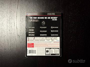 L'intera saga di Hideo Kojima in una confezione: 8 giochi, 25 anni di storia, dal 1987 al 2012. Mai usato, completo di confezione esterna in cartoncino e artbook da 100 pagine — tutto in condizioni perfette. Versione nordamericana (English/French/Spanish) — funziona su qualsiasi PS3, la console è region-free. Contenuto: — Metal Gear & Metal Gear 2: Solid Snake — Metal Gear Solid + VR Missions (codice download) — Metal Gear Solid 2: Sons of Liberty HD — Metal Gear Solid 3: Snake Eater HD — Metal Gear Solid 4: Guns of the Patriots — Metal Gear Solid: Peace Walker HD — 2 graphic novel digitali — Artbook esclusivo da 100 pagine Fuori produzione, esclusiva PS3. Contiene MGS4, l'unico capitolo della saga mai portato su un'altra piattaforma. Confezione in cartoncino integra, libretto perfetto, dischi mai inseriti nella console.
