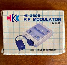 Vendo modulatore RF modello HK-360S compatibile con Super Nintendo PAL, perfettamente conservato e con scatola originale.