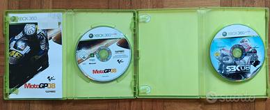 Coppia di videogiochi originali per console Xbox 360 a tema motociclistico. Il lotto include: MotoGP 08 (Capcom): Gioco ufficiale della classe regina, include piloti, circuiti e moto della stagione 2008. Custodia e manuale inclusi. SBK 08 Superbike World Championship (Milestone): Simulazione ufficiale del campionato Superbike. Custodia inclusa. Condizioni: Entrambi i dischi sono in buone condizioni estetiche e perfettamente funzionanti. Le custodie sono integre. Lingua italiana disponibile in entrambi i titoli. Vendita in coppia. Disponibile per consegna a mano o spedizione tramite i servizi di Subito.