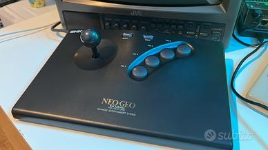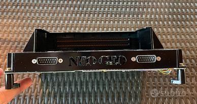 Neo Geo MVS consolizzata completa con uscita RGB di alta qualità, cavo scart RGB custom, x1 controller/arcade stick originale neo geo aes, alimentatore nuovo compatibile, x2 porte controller neo geo per due giocatori e Unibios già installato.