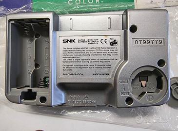 Collezione privata vendo: neo geo poket NEOP-A2 completo di scatola con seriale corrispondente, interno e manuali completi, come da foto. vani batteria senza acido, schermo perfetto no graffi, no pixel dead. Completo di scheda originale americanan flashmasta (ho scatola spedizione del ragazzo americano Flavor) con 2 slot giochi tramite cavo usb (p.s. causa lavoro turni, posso rispondere in orari variabili)