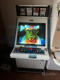 Lo stesso cabinato lo trovate dentro l’oav fatal fury demolition mind giocato da terry bogard alla neo geo land