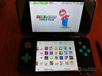 New Nintendo 2DS XL colore nero/blu. come nuova. Completa di dotazione originale come da foto. Nella memoria console sono installati oltre 50 giochi + altri giochi DS su scheda R4 gold Per informazioni contattatemi Per info contattatemi