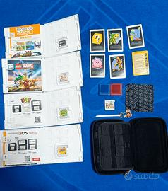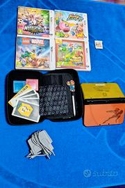 Console originale: New Nintendo 3DS XL Samus Edition con scatola e caricabatterie originali; 5 giochi: - Mario Sports Superstars, con confezione originale; - Kirby Battle Royale, con confezione originale; - Mario Tennis Open, con confezione originale; - Marvel Super Heroes, con confezione originale; - Super Smash Bros 3DS, senza confezione originale; Custodia di Super Mario con due comparti (uno per la console ed uno per le schedine e accessori, con 6 carte per la realta aumentata, una penna touch di Super Mario, un panno per pulire lo schermo e due porta schedine. La console presenta piccoli segni di usura sulla parte frontale e posteriore. CONTATTARE PER OGNI ESIGENZA.