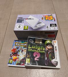 New Nintendo 2DS XL con Tomodachi life già preinstallato + 2 giochi Luigi's Mansion 2 e Rayman. Console con ampio schermo da 4,88 pollici e un peso di soli 260 grammi.