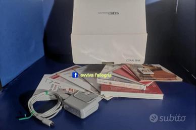 E' presente la scatola esterna con sigillo Siae che presenta alcuni strappi, scatola interna bianca integra con manuali all'interno, Nintendo 3ds pink con cover di protezione, con base di ricarica, caricabatteria.