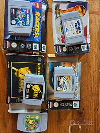 Nintendo 64 dotato di scatola, 2 controller di cui 1 con scatola + 5 giochi (Zelda Ocarina of time, Super Mario 64, Top Gear, World Cup 98, Lego Racers). Tutti i giochi tranne super mario sono dotati di scatola originale, ad alcune mancano i libretti, su zelda dovrebbe esserci tutto.