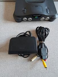 Console Nintendo 64 nera, completa con controller e cavi di alimentazione + Expansion Pak e Controller Pak.
