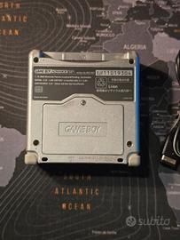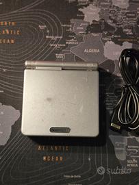 Nintendo Game Boy Advance SP grigio C/AGS-JPN model n. AGS-001 perfettamente funzionante con batteria nuova. Cavo di ricarica con attacco USB tipo A così potete ricaricarla con un vostro alimentatore per smartphone. La scocca è originale.