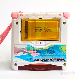 Gameboy advance sp restaurato Il Gameboy è completamente funzionante, sono state apportate alcune modifiche a livello hardware che vado ad elencare: - sostituto schermo del Gameboy ormai obsoleto con uno di ultima generazione (versione V5 hispeedido) con controlli touch a schermo oppure è stato collegato un cavo alla scheda madre per poter selezionare l'intensità del contrasto luminosità (15 livelli) e densità dei pixel col tasto classico della luce del Gameboy - sostituita batteria originale con una lipo da 1000 mh ora, testata, ha una durata a schermo al massimo di 4.30/5 ore. la carica completa viene effettuata in altrettanto tempo quindi in 4 ore - la scheda madre è stata pulita in ogni sua parte, è stata testata ed è perfettamente funzionante - è stata inserita la presa di ricarica USB tipo C così si può caricare tranquillamente ovunque senza problemi. - è stato cambiato il led di accensione con uno blu per richiamare gli occhi di MEW. NB si carica solo con cavo tipo A con C non C con C - la scocca è stata realizzata tutta a mano, quindi magari non è precisissima, è stata coperta tutta la parte della verniciatura con trasparente opaco e alcuni dettagli lucidi per farli risaltare. L'etichetta posteriore è stata protetta anch'essa con il trasparente lucido di modo che non si rovini nel tempo. NB. IL GIOCO È SOLO DIMOSTRATIVO NON VIENE VENDUTO ASSIEME ALLA CONSOLE, IL CAVO DI RICARICA È INCLUSO.