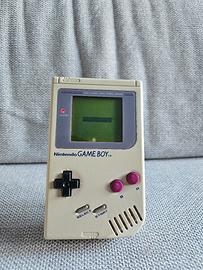 Nintendo Gameboy Classic grigio in buone condizioni generali, funziona perfettamente ad eccezione dell'audio che non si sente. Presenta qualche graffio sullo schermo e sulla scocca della console. Venduto insieme ad un adattatore per giocare multigiocatore fino a 4 giocatori.