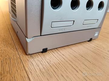 Console Nintendo GameCube Limited Platinum Edition, versione Pal Eur DOL-001, anno 2001, unico proprietario, testata e perfettamente funzionante. La batteria tampone è ovviamente scarica dopo 25 anni, pertanto il sistema non mantiene memoria di data ed orario. La console è sbeccata in un punto, come da foto. Include cavo video originale e alimentatore originale marchiati Nintendo. Vendo a mano a Torino o spedisco tramite Subito. Vi aspetto!