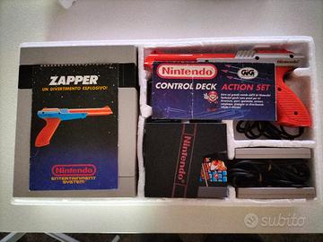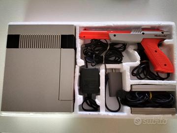 Vendo Nintendo Nes completo di due joystick con pistola Zapper e tutti i cavi necessari per il collegamento,completo di scatola originale,compresi ci sono 10 giochi funzionanti.Il tutto è stato tenuto maniacalmente da vero appassionato.No perditempo