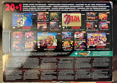 Vendo Nintendo Super NES Classic Mini, console in edizione retrò con 21 giochi preinstallati, tra cui capolavori come Super Mario World, The Legend of Zelda: A Link to the Past, Donkey Kong Country, Street Fighter II Turbo e molti altri.