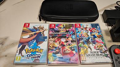 Console perfetta utilizzata sempre in casa, dotata di tutti gli accessori di base più un'altra coppia di joystick, la torretta per ricaricarli, 4 volanti originali e una custodia originale.