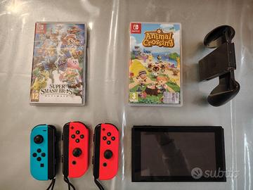 Vendo NINTENDO SWITCH semi nuova con 3 Joy-con funzionanti, base di ricarica e 2 giochi per Nintendo Switch: SUPER SMASH BROS ULTIMATE & ANIMAL CROSSING NEW HORIZON (confezione inclusa)