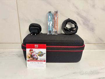 Metto in vendita la mia Nintendo Switch 2, acquistata alla fine di luglio 2025. È stata usata solo 4 volte, quindi è come nuova. Contenuto del pacchetto: Console Nintendo Switch 2 in perfette condizioni. Borsa di trasporto. offerta (nuova) Caricabatterie ufficiale + cavo HDMI. 2 Joy-Con (blu e rosso) Supporto per la manetta Joy-Con Gioco Mario Kart World (codice incluso) Gioco Splatoon 3 già installato sulla console