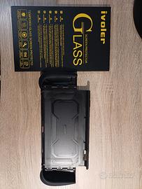 insieme proteggi switch in plastica rigida e schermo protettivo ancora da applicare.