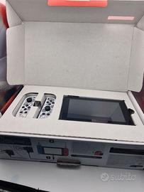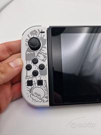 Nintendo Switch originale funzionante e testata con joycon custom di splatoon, i joycon si illuminano quando sono utilizzati. Console portatile e domestica, 32 GB. Nell'acquisto compresi anche il dock, i joycon funzionanti , il caricatore non ufficiale ma funzionante e la scatola in buone condizioni con uno comparto in cartone presente Funziona tutto, pulsanti, touch screen, dock per il collegamento alla TV e legge perfettamente i giochi. La console si carica leggermente piu lentamente ma niente di grave