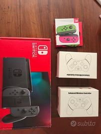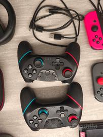 Vendo Nintendo switch + accessori e 4 giochi (vendo lotto intero non vendo pezzi singoli): - Nintendo switch in ottime condizioni compresa di caricabatterie originale e supporto per televisore originale (manca cavo HDMI). - due Joy-Con pair originali Nintendo switch funzionanti - un supporto Joy-Con originale Nintendo switch - due joystick funzionanti con cavo per ricaricarli - due volanti funzionali per Mario kart - 1 kit per la riparazione dei Joy-Con - Demon Slayer the hinokami Chronicles - Zelda tears of the Kingdom -Super Mario Party Jamboree - Mario kart Deluxe 8 - scheda SD da 128 GB originale Nintendo - scatola originale Nintendo switch e Joy-Con - una tracolla e un astuccio porta switch e accessori Prezzo trattabile