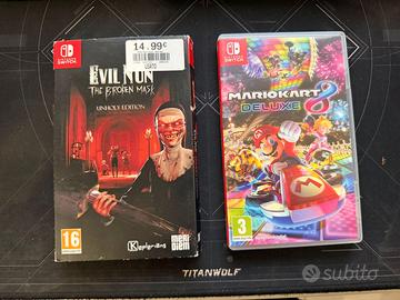 Come da titolo vendo Nintendo Switch + 4 Joycon + 2 Giochi (Mario Kart 8 Deluxe ed Evil Nun). Console perfettamente funzionante ed è il modello che si può collegare al televisore per giocare in compagnia sul divano (magari a Mario Kart grazie ai 4 Joycon). Ho anche un accessorio che serve per giocare con la console in modo portatile, aiuta con la presa e simula un Joystick, se interessati è compreso nel prezzo e posso mandare ulteriori foto. NO PERDITEMPO, NO OFFERTE RIDICOLE. Ritiro solo a mano a Langhirano, provincia di Parma. Sono disponibile per ulteriori foto o video.