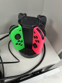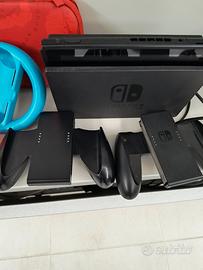 Vendesi console Nintendo switch + 4 joycon + base di ricarica + custodia per trasporto + accessori (4 sterzi, 2 joystick) + 6 giochi ( Mario kart Deluxe, Mario party, the Legend of Zelda, Dragonball, Hogwarts, Spyro)