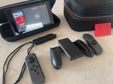 Vendo Nintendo switch in ottime condizioni con vetrino appena cambiato, completa di inpugnatura, 2 joycon completi di slitta (uno dei 2 non funziona in orizzontale), 1 custodia grande per traportare tutto in viaggio, 1 custodia slim solo per console e joycon con alloggio per utilizzarla in appoggio, un astuccio per portare al seguito 4giochi. Tutto originale Nintendo.