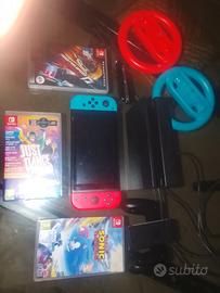 vendo Nintendo switch, usata pochissimo da mio figlio, comprende 3 giochi e tutti gli accessori che si vede in foto... sarebbe due volanti... prezzo poco trattabile