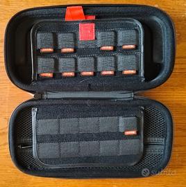 Console completa come originale più due controller, una cablata con 2 m di filo e una bluetooth, protezioni per Joy Stick, console e schermo, 10 giochi, collegamento per tastiera e mouse, e custodia da trasporto.
