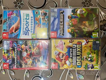 •4 giochi originali: Mario Kart Deluxe, Mario Bros Deluxe, Nintendo Switch Sport (con accessorio incluso) e Minecraft
