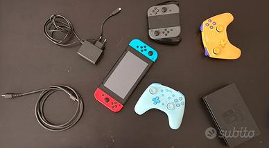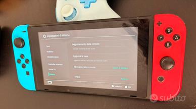 Vendo Nintendo Switch (modello 2018), utilizzata sempre in casa e in ottime condizioni generali. Incluso nel pacchetto: * Console Nintendo Switch * Base/dock originale * Cavo USB originale * Cavo HDMI originale * 4 joystick originali Nintendo * 3 joystick aggiuntivi non originali I 4 joystick originali presentano alcuni problemi di batteria (si scaricano velocemente) e talvolta possono non funzionare correttamente. Anche 1 joystick non originale ha qualche malfunzionamento occasionale. La console invece funziona perfettamente ed è stata usata con cura, principalmente collegata alla base. Ideale per chi cerca una Switch completa con più controller inclusi.