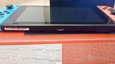 Nintendo Switch con scatola originale, Dock, cavo di alimentazione, Joycons e impugnatura joycon. La console funziona perfettamente ed è in ottime condizioni estetiche, ha qualche riga superficiale sullo schermo ma niente di serio. Il touch funziona perfettamente, i joycon non hanno drift e il lettore di card e di SD funzionano.