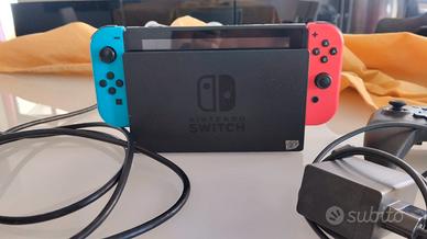Nintendo Switch con scatola, alimentatore, dock e anche un joystick in piú