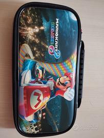 Vendo Nintendo Switch usata, compresa di caricatore, cavo per collegarla alla TV con custodia nuova di Mario Kart 8 Deluxe (con cofanetti per le schede di gioco) e due videogiochi compresi nel prezzo: Super Mario Party e Overpass.
