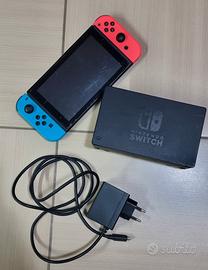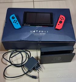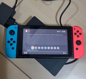 Nintendo switch in buone condizioni e funzionante, completa di base dock e caricatore, ha ancora la pellicola originale sul display. Appena sostituito il joystick del controller destro. Regalo memory card da 32gb. Senza confezione, come in foto.