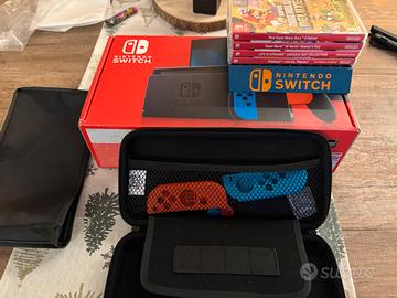 - Nintendo Switch, usata pochissimo, formattata e completa di tutti gli accessori (caricabatterie/alimentatore, cavo HDMI, 2 joycon rosso/blu e adattatore per la TV);