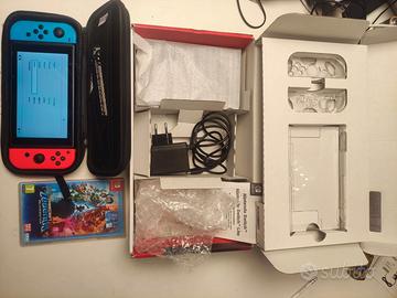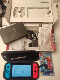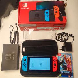 Segnalo che la scatola visibile in foto appartiene a una Nintendo Switch Lite (usata qui solo per protezione). La console in vendita è ovviamente la Switch Standard (quella ibrida che si collega alla TV), venduta senza la sua scatola originale di cartone ma con tutti gli accessori sopra elencati.