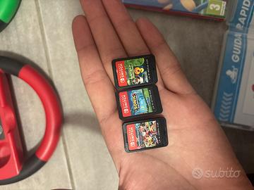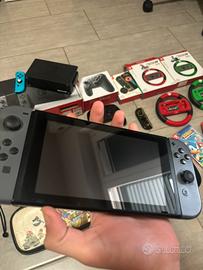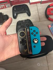 Nintendo Switch comprata a fine 2021 nuova in condizioni ottimali,sia a riguardo di estetica sia per il funzionamento;la console è sempre stata usata con la pellicola protettiva,oggi è stata levata per la prima volta per far vedere lo schermo.Dotata di : 1 Pro controller ORIGINALE completamente funzionante 1 controller di marca secondaria pagato 40€ ma comunque funzionante 2 porta nintendo,uno originale un po più piccolo e un altro enorme 2 volanti da usare con i joycon per giocare a MarioKart(in dotazione)uno versione Mario e l altro Luigi 1 paglio di Joycon grigi originali completamente funizionanti 2 Joycon:Uno destro originale con levetta personalizzata e quello sinistro(Zelda) versione Hori+Nintendo,il seguente joycon è completamente funzionante ma non si puó utilizzare staccato dalla nintendo perche è un Handheld Mode Only come si legge sulla scatola 1 cover rossa 1 alimentatore originale e hdmi 2.1 1 basetta per utilizzarla con la tv originale 2 controller per joycon 2 ferma joycon con laccetto originali,comodi per giocare a giochi con un joycon solo E ovviamente tutte le scatole ,tranne del controller non originale Se vorreste ulteriori informazioni non esitate a contattarmi o a chiedermi foto,il prezzo è trattabile
