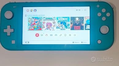 Nintendo Switch Lite Turchese schermo LCD 5,5 memoria 32GB con 4 giochi , perfettamente funzionante senza segni dì usura,con cover in silicone protettiva, caricabatterie originale Nintendo,non possiedo scatola originale e la garanzia, andato persa scatola con scontrino.