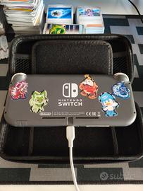 Nintendo switch lite grigia, un po' usurata dal tanto utilizzo, ma offre comunque prestazioni dignitosissime per essere una console full-portable, regge benissimo anche giochi più recenti come polemon Z-A. Completano il pacchetto una custodia Gialla, una microSD compatibile con il sistema switch e la scatola originale.