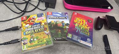 Nintendo switch OLED usa poco e il che ci guarda per essere usata, contiene schermo con protezione,3 giochi di cui Mario,jast dance,mycraft,con custodia protettiva. Compresa la scatola.
