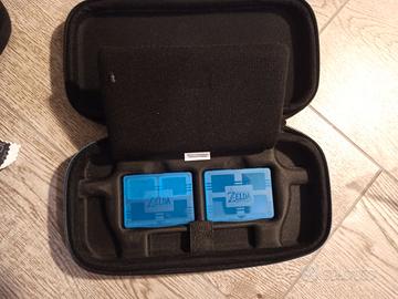 Nintendo Switch completa di tutti gli accessori di vendita (joystick vari, caricatore ec.), più un Pro controller Nintendo, più un porta console (brand: Zelda, colore: blu) e scatola originale.