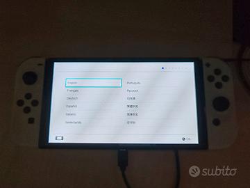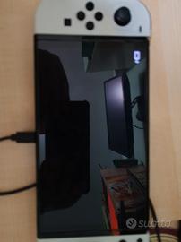 Nintendo switch oled bianca 64gb di memoria tenuta benissimo vetrino già montato joycon sinistro é con gommini rovinato ma con un gommino sopra si risolve. inoltre sono inclusi nell'offerta altri due joycon neri (copia non originali ma funzionanti )con custodia protettiva joycon cavi inclusi HDMI e alimentatore e dock inclusa con anche custodia da viaggio.