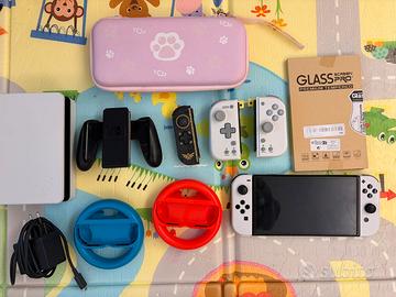 Vendo console Nintendo Switch (modello OLED) con Joy-Con bianchi, in condizioni estetiche e funzionali eccellenti. La console è stata tenuta con estrema cura, come visibile dalle foto.