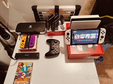 Insieme alla console cedo tutti gli accessori presenti in foto come, micro sd 256gb, un altro paio di joycon originali, joystick wireless, hub con telecomando per collegare più cartucce contemporaneamente alla console ecc.