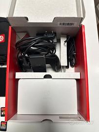 Vendo nintedo switch Oled bianca perfettamente funzionante con 10 giochi come in foto. Completa di scatola e accessori, borsa per trasporto, scheda micro sd da 64gb e pellicola su schermo applicata.