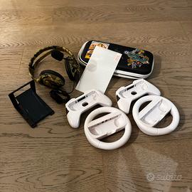 • Set di accessori vari: cuffie con microfono, porta consolle, porta Joy-Con a joystick e volante, vetrino temperato salvaschermo, altri accessori;