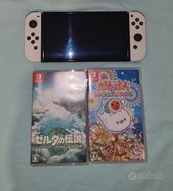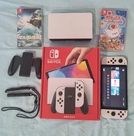 nintendo switch oled bianca completa di tutti gli accessori standard, non presenta graffi o segni di usura su nessuna superficie, usata solo 8 ore e mai più toccata, versione giapponese (il caricabatterie ha presa giapponese, tranquillamente utilizzabile con adattatore da 1.5€ su amazon),