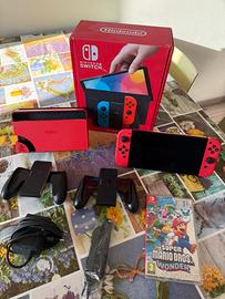Vendo Nintendo switch OLED, edizione rossa Super Mario + Super Mario Bros Wonder La console è stata usata pochissimo ed è quasi come nuova. La scatola è originale ma non è quella dell'edizione super mario, perché la sua scatola è stata strappata all'apertura. Includo anche un altro joycon se volete giocare in compagnia di qualcuno. Cavo HDMI incluso.